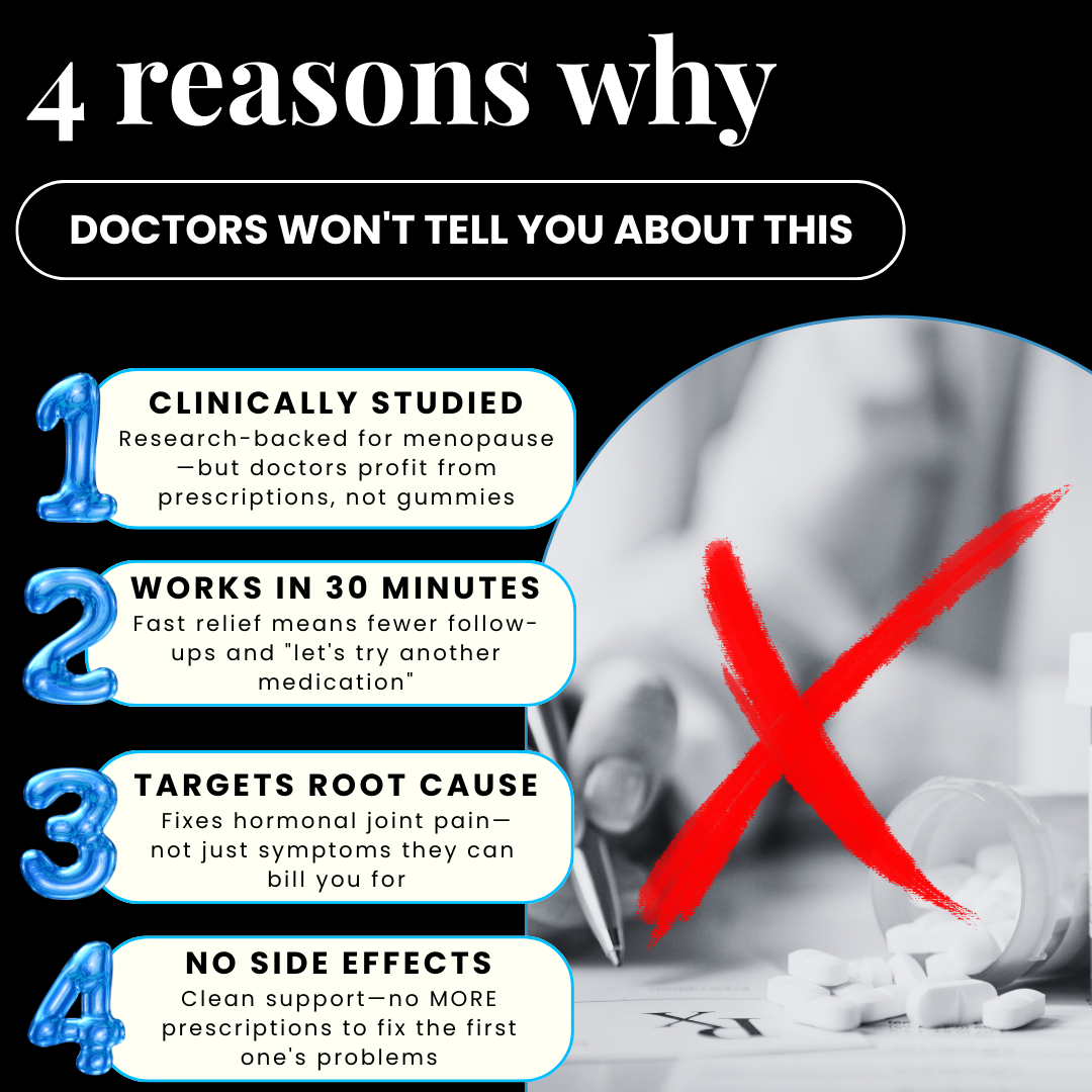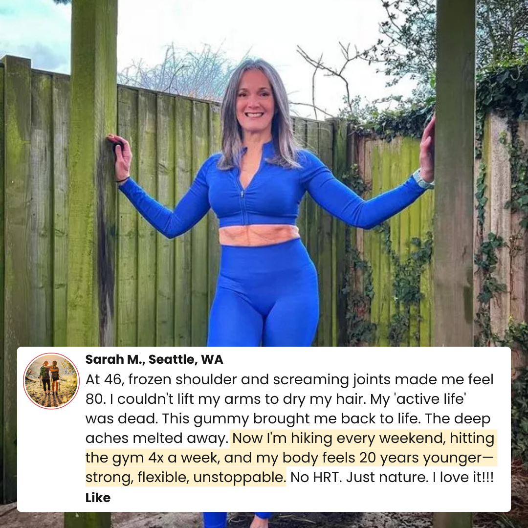 "I Thought I Was Falling Apart—Turns Out It Was Just Menopause" "I couldn't open jars. I groaned every time I stood up. Getting out of bed felt like torture. My doctor said 'you're fine, just arthritis.' I tried this gummy out of desperation. Within 2 weeks, my joints stopped screaming. I'm moving freely again. I feel like ME again. I can play with my grandkids without wincing."